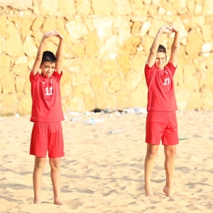 على شاطئ الرملة البيضاء، يتابع نجوم المستقبل عملهم الجاد بروحٍ عالية وتركيز كبير، ضمن استعداداتهم للمباريات المُقبلة.